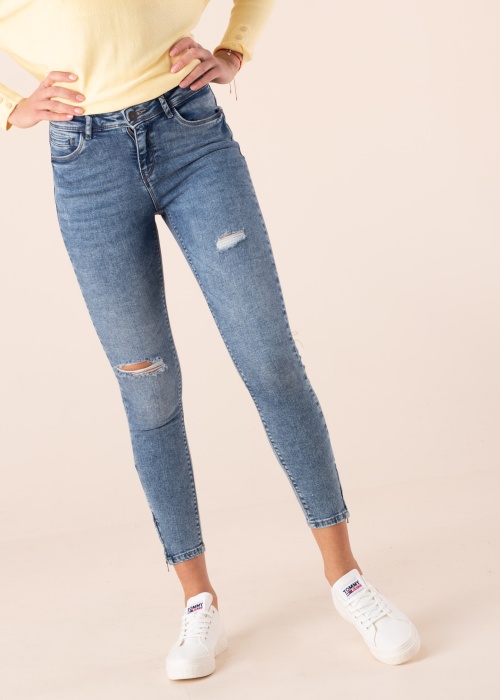 Красивые, женственные джинсы Noisy May Kimmy прекрасно вписываются в повседневный гардероб. Облегающий узкий крой. Простой пояс Regular Rise с застёжкой на молнию и пуговицу. Шлёвки на поясе позволяют носить джинсы с ремнём. На передней части расположено три кармана, один из которых маленький. На задней части изделия расположено два слегка выбеленных кармана. Передняя часть штанин с красивой выбеленной поверхностью и прорехами, добавляющими молодёжность изделию. Штанины кроя Super Slim Leg с молниями на внешней поверхности, при помощи которых можно регулировать ширину штанин и посадку. Эластичная ткань красиво облегает тело, обеспечивая комфорт и свободу движения. Рост модели: 178 см. Демонстрируемое изделие: размер 27/32. Состав материала: хлопок 98%, эластан 2%. Цвет: синий