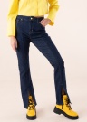 Модный джинсы Somethingnew для стильной женщины. Эти в стиле ретро из неэластичного денима джинсы - Средняя посадка талии и расширяющиеся снизу штанины. Пояс застёгивается на пуговицу и замок, спереди и сзади имеет открытый карман. на штанинах- дизайнерский шов и на концах штанин разрез. Сочетай с разной одеждой и создавай свежий стиль! Рост модели - 177 см и носит размер 27/32.