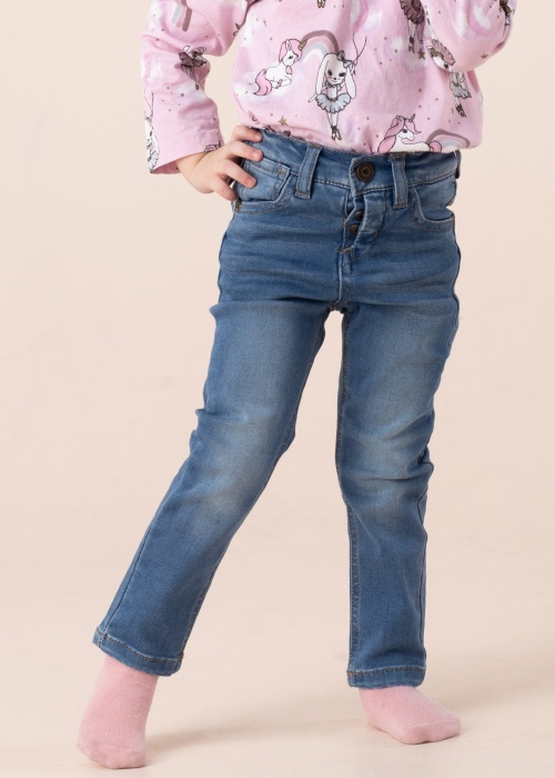 Мягкие и эластичные джинсы Name It Theo удобны для насыщенного дня в детском саду, позволяя вашему ребёнку двигаться с комфортом. Брюки окрашены красителем индиго. Это придает оригинальный цвет джинсовой ткани, который естественным образом выцветает при стирке. Пояс модели с 5 карманами застёгивается спереди на пуговицы, а талия регулируется изнутри эластичным тоннелем с пуговицами. Модель ростом 94 см носит размер 98.