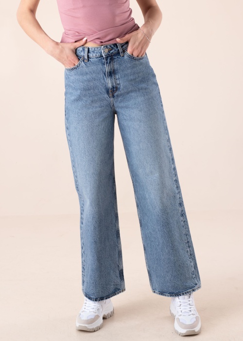 Нестареющий джинсы JJXX - смелый стиль. Модный и широкие штанины джинсы- из неэластичного денима и широкие штанины. Пояс застёгивается на пуговицу и замок , спереди и сзади открытый карман , также сзади- кожаный знак. Рост модели - 178 см и носит размер 27/32.