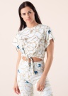 Красивая футболка с эффектным принтом Guess Dolly идеальна для повседневного гардероба. Свободный топ в стиле Crop. Круглый вырез горловины. Низ изделия завязывается на ленты согласно вашим предпочтениям. Мягкая, комфортная для кожи ткань. Футболка идеальна для лета! Рост модели 176 см. Демонстрируемое изделие размер S. Состав материала: хлопок 100%. Цвет: зелёный/узорчатый