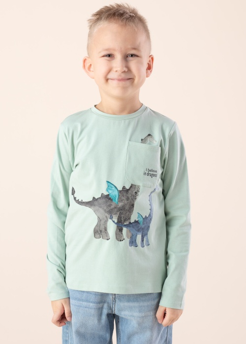Классная футболка Name It Mini позволяет везде чувствовать себя хорошо. Приятно мягкая игривая футболка - длинные рукава и длинные рукава. Перед украшает эффектный принт , также на груди находится открытый карман. Комфорт при движении в течение всего дня гарантирован! Рост модели - 120 см и носит размер 122.