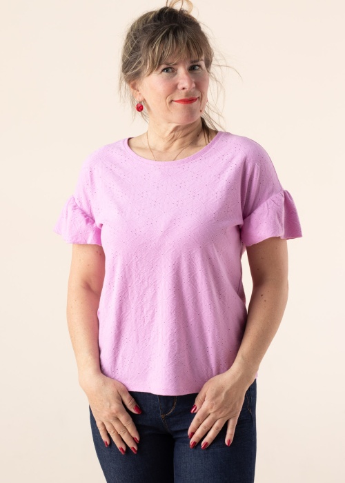 Симпатичная футболка Esprit подходит для дней разного характера. Красивая и с круглой горловиной футболка- с приятным прикосновением и с круглой горловиной. Удобства добавляет эластичность материала и выразительности добавляют привлекательный волан на рукавах. Сочетайте с Вашими любимыми джинсами, и Вы будете чувствовать себя уверенно. Рост модели - 168 см и носит размер S.