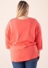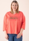 Красивая футболка Fransa Plus Size подходит для повседневного ношения. V-горловина футболка- рукава 3/4, из мягкого хлопка и с удлинённым покроем сзади. Выразительности добавляет надпись на груди , на внешнем боку разрез , также удобства добавляет эластичность материала. Рост модели - 167 см и носит размер 46-48.