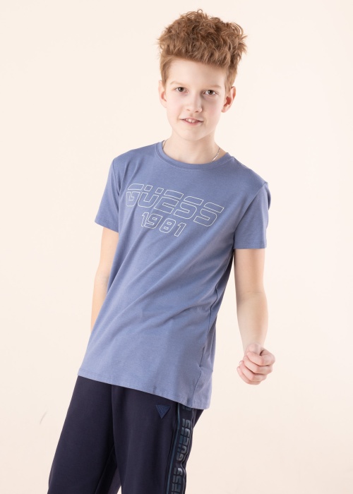 Простая спортивная футболка пастельного цвета от бренда Guess - прекрасный выбор для повседневного гардероба. Круглый вырез горловины. Прямой крой обеспечивают комфорт во время движения. Логотип бренда на передней части добавляет молодёжность изделию. Изделие содержит волокна органического хлопка. Рост модели 156 см. Демонстрируемое изделие 147. Состав материала: хлопок 48%, модал 47%, спандекс/эластан 5%. Цвет: синий