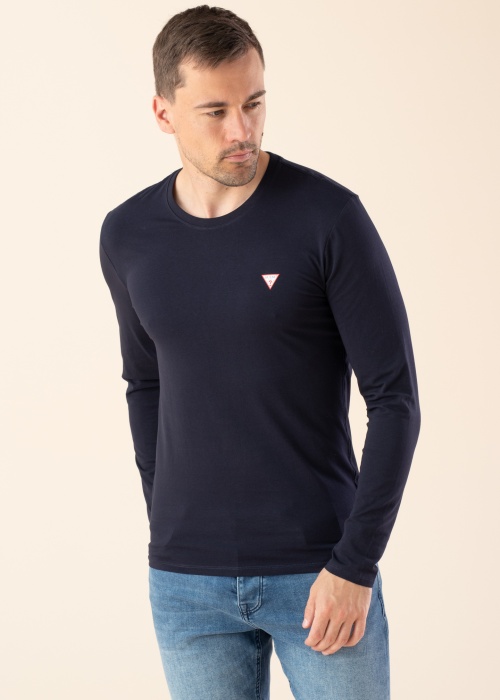 Стильная футболка Guess подходит для повседневного ношения. Простая с круглой горловиной футболка - длинные рукава мягкая и эластичная. Товар имеет с покроем Slim Fit и на груди имеет логотип бренда. Комфорт при движении в течение всего дня гарантирован! Рост модели - 188 см и носит размер L.