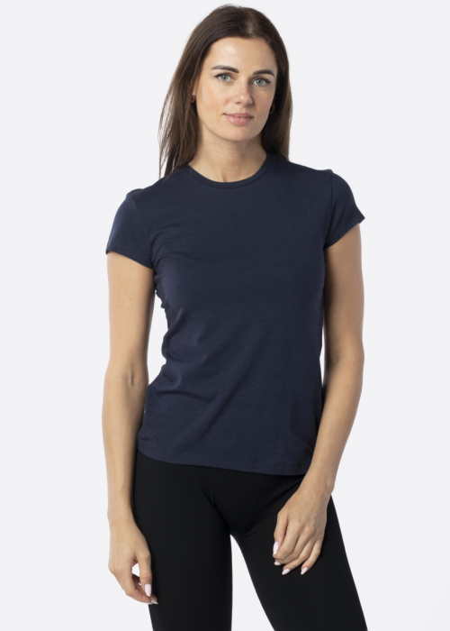 Футболка от бренда Diverse выполнена в простом и минималистичном стиле. Она имеет короткие рукава и круглый вырез, а также изготовлена из эластичной ткани. Модель на фото имеет рост 176 см и носит размер S.