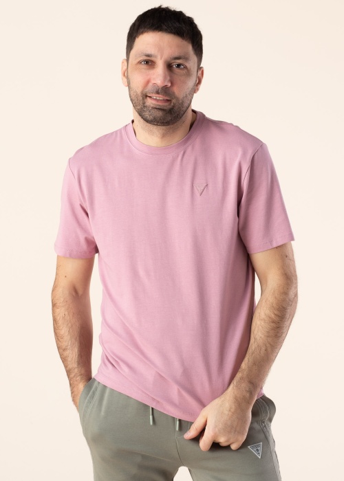 Футболка Guess ключевое слово – удобство. Качественная и строгая футболка- эластичная и приятно мягкая. Стильный дизайн добавляет изящности и на груди имеет знак бренда. Рост модели - 188 см и носит размер L.