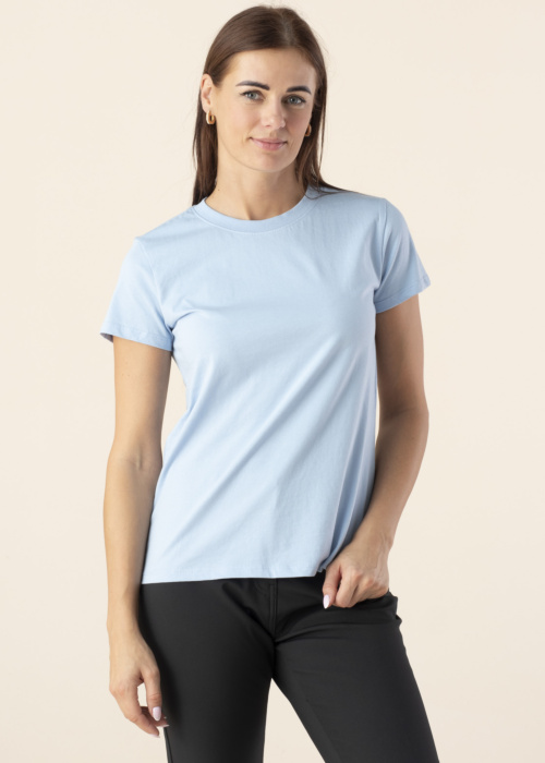 Футболка Didriksons для женщин Ingaro имеет круглый вырез, который придаёт ей классический и универсальный вид. Она выполнена в однотонном цвете, что позволяет легко сочетать её с другими вещами в гардеробе. Короткие рукава обеспечивают комфорт и свободу движений, а мягкая ткань делает её приятной на ощупь. Рост модели составляет 176 см, и она носит размер 36.