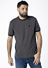 Футболка Marshall имеет круглый вырез и стильный узор. На груди расположен логотип бренда, который придаёт изделию уникальность. Модель имеет рост 188 см и носит размер L.