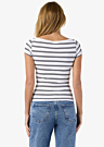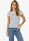 Футболка Noisy May для женщин, модель Maya, имеет круглый вырез и облегающий силуэт. Она выполнена в простом стиле с полосатым узором, эластичная и приятная на ощупь. Идеально подходит для повседневного ношения дома, на работе или в свободное время, с дизайнерской строчкой на вырезе.