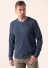 Блузка с длинными рукавами Noble от Blend со структурным узором поверхности и игривым оттенком — удобный и уютный предмет гардероба для прохладного осеннего сезона. Низкий вырез горловины застегивается спереди на три пуговицы, края рукавов окантованы мягкой резинкой, нижний край свободно ниспадает. По нижнему краю добавлена скромная текстильная этикетка. Рост модели 188 см, изделие в размере L.