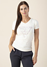 Женская футболка от Guess выполнена в однотонном цвете, что придаёт ей стильный и элегантный вид. Эффектный V-образный вырез и короткие рукава подчёркивают женственность и современность этой модели. Эластичная ткань обеспечивает комфорт и идеальную посадку. Модель ростом 176 см носит размер S.