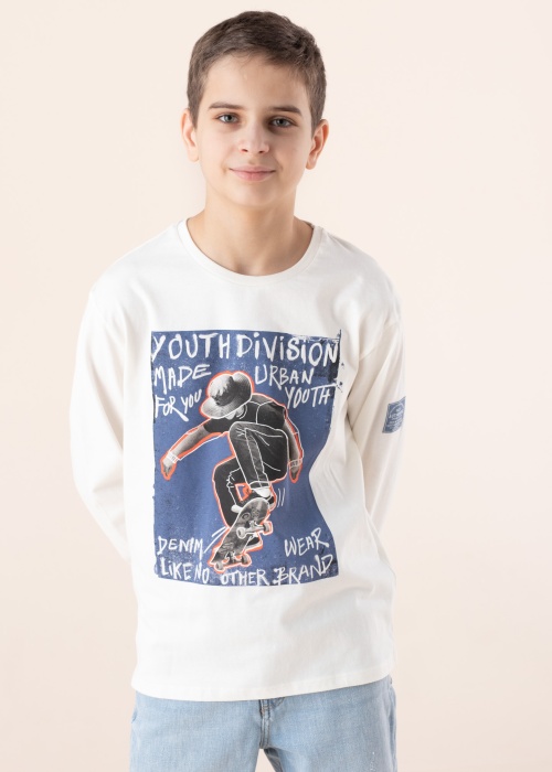 Повседневная футболка Name It Kids подходит для ношения как в школе, так и развлечений с друзьями. Из мягкого хлопка футболка - стильная и длинные рукава и перед украшает эффектный принт. Рост модели - 153 см и носит размер 146.