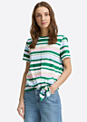 Женская футболка от Tom Tailor отличается стильным полосатым дизайном и круглым вырезом. Она имеет короткие рукава и выполнена из легкого, дышащего материала, который обеспечивает комфорт на протяжении всего дня. Свободный крой и декоративный элемент на нижнем крае придают изделию особый шарм.