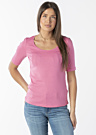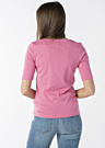 Женская футболка от Tom Tailor выделяется ярким цветом и круглым вырезом. У нее рукава длиной три четверти, а материал, из которого она сделана, эластичный, что обеспечивает комфорт и свободу движений. Модель имеет рост 176 см и носит размер S.