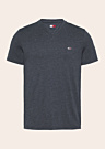 Футболка Tommy Jeans для мужчин отличается комфортом и мягкостью, что делает её идеальной для повседневной носки. Она имеет короткие рукава и V-образный вырез, придающий ей стильный и современный вид. На груди футболки расположен логотип бренда, подчёркивающий её оригинальность и качество.