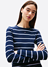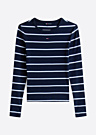 Женская футболка Tommy Jeans имеет облегающий крой и лаконичный дизайн. Она изготовлена из эластичной ткани с ребристой текстурой и украшена полосатым узором. На передней части футболки расположен логотип в виде флага.