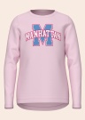 Футболка для девочек от Name It Kids Vix идеально подходит для повседневного ношения. Она имеет длинные рукава и круглый вырез, что делает её очень удобной. Материал приятный на ощупь и эластичный, обеспечивая комфорт в течение всего дня. На груди есть надпись, а на вырезе — резинка, добавляющая стильный акцент.