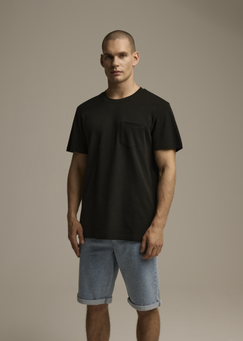 Футболка Diverse для мужчин в стиле waffle — это минималистичный и удобный элемент гардероба с прямым кроем и короткими рукавами. Она изготовлена из эластичного материала, что делает её идеальной для повседневного ношения. На поверхности футболки имеется текстурный узор, открытый карман на груди и резинка на воротнике.