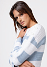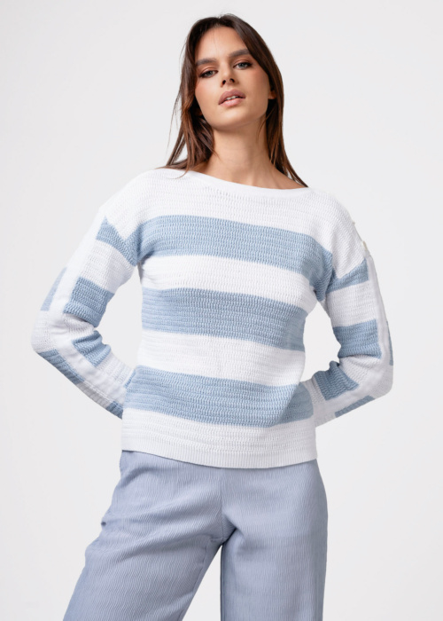 Женский свитер от Ivo Nikkolo, модель Klayre, отличается простотой и комфортом, что делает его идеальным для повседневной носки. Он украшен полосатым узором и имеет длинные рукава, а также прекрасно драпируется благодаря продуманному дизайну. Резинка на манжетах и по нижнему краю, а также стильная деталь на плече придают свитеру особый шарм.
