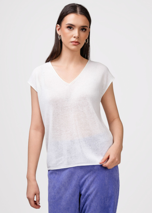 Женский свитер от Ivo Nikkolo отличается элегантным V-образным вырезом и короткими рукавами. Он изготовлен из вязаного материала, который придаёт ему лёгкую прозрачность. Этот свитер станет отличным выбором для различных случаев благодаря своему универсальному стилю.