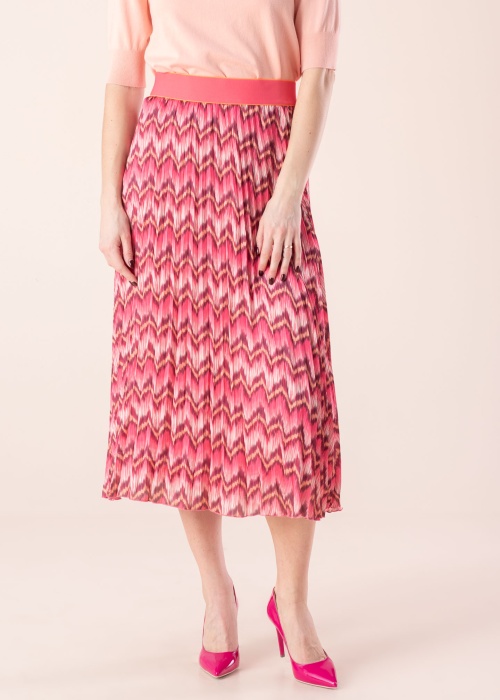 Юбка EsQualo создан для тех, кто следит за трендами. Плиссированная юбка- эластичная талия и длина Midi , также в качестве дополнительного плюса товар - шелковистый и подвижный. Игривый узор добавляет привлекательности , также снизу подъюбник. Рост модели - 177 см и носит размер 36.