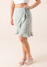 Летняя юбка с запахом Henna от Vero Moda легкая и тонкая. Тонкая юбка изготовлена из переработанного полиэстера и завязывается узелком на левую сторону. Край окаймлен очаровательной оборкой, что придает образу изящную летучесть. Рост модели 169 см, изделие в размере S. Длина 57 см.