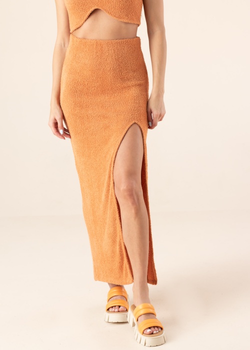 Своеобразная юбка Somethingnew подходит для летного ношения. Модная юбка- эластичная талия и мягкая. Выразительности добавляет разрез слева. Приятная на ощупь ткань позволяет насладиться ношением. Рост модели - 176 см и носит размер S.