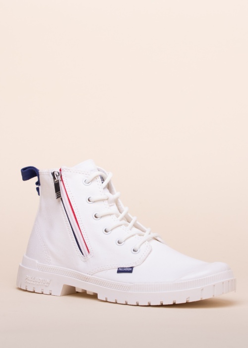 Обувь „Palladium” первоначально производилась в Лионе, Франция. Производство обуви „Palladium” началось после Второй мировой войны. Сегодня „Palladium” принадлежит американской компании K-Swiss и производится в Китае и Вьетнаме. Их обувь прочная и легкая, водонепроницаемая и из быстросохнущей ткани, выдерживает ходьбу, ползание, бег и лазание. Если их дизайн стал вневременным, то это потому, что он отвечает основным требованиям прочности, износостойкости, времени и тенденциям.