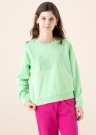 Классная кофта Name It Kids подходит для активных будней. Стильная и хорошая кофта- из ткани для спортивных костюмов и хорошая. Перед украшает классная картинка и выразительности добавляют декоративный элемент. Удобства добавляют соник как на краях рукавов, так и снизу. Рост модели - 155 см и носит размер 146/152.