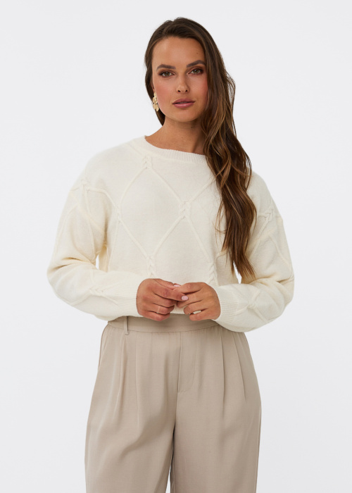Женский свитер от EsQualo — это уютный и стильный выбор для прохладных дней. Он оснащен высоким воротником и длинными рукавами, что обеспечивает дополнительное тепло и комфорт. Изготовленный из мягкой вязаной ткани, этот свитер станет отличным дополнением вашего гардероба.