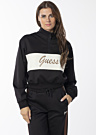 Женский свитшот Guess Fabia - это стильный и уникальный предмет гардероба. Внутренняя поверхность обработана, что делает его приятным на ощупь и мягким. Изделие выполнено из трикотажной ткани с логотипом бренда и застёжкой спереди. Модель имеет рост 176 см и носит размер S.
