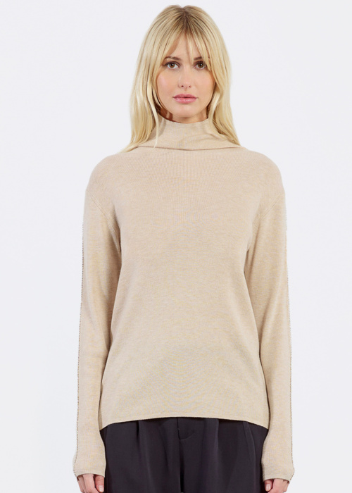 Свитер от Lili Sidonio для женщин отличается высоким воротником и приятной на ощупь текстурой. Этот эластичный свитер сочетает в себе стиль, комфорт и практичность, что делает его идеальным выбором для повседневной носки. Блестящие камни на рукавах и воротнике придают ему изысканность и элегантность.