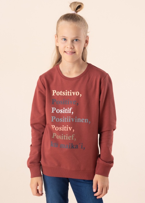 Красно-коричневая кофта Lotal от Name It полна позитива! Кофта прямого кроя, с небольшим круглым вырезом и длинными рукавами. Платье средней толщины изготовлено из экологически чистого органического хлопка, внутренняя часть очень мягкая и утеплена! Лицевая сторона украшена надписями «Позитивный» разными цветами и на разных языках. Рост модели 146 см, надет размер 146. Материал: органический хлопок 95%, эластан 5%. Цвет: коричневый