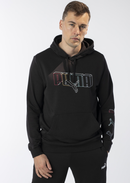 Мужской свитшот от Puma сочетает в себе комфорт и стильный дизайн. Он оснащен капюшоном и карманом-кенгуру на передней части, а также украшен фирменным логотипом бренда на левом рукаве. Капюшон регулируется шнурком, а манжеты и нижний край имеют резинку для дополнительного удобства.