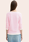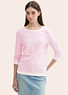 Женский свитер от Tom Tailor имеет стильный полосатый узор и круглый вырез. Рукава три четверти украшены сборками, что добавляет интересный элемент в дизайн. Мягкий и эластичный материал обеспечивает комфорт и идеально подходит для повседневной носки. Манжеты и нижний край выполнены в рубчик, что делает свитер более удобным и эластичным. Этот свитер является частью коллекции Be Part и изготовлен из экологически чистых материалов, что делает его хорошим выбором для окружающей среды.
