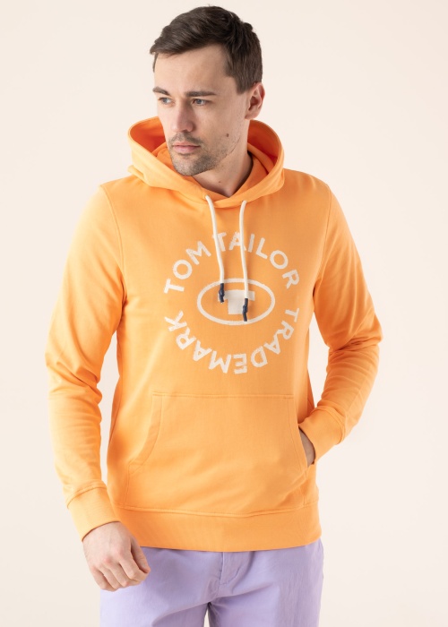 Беспретензионная кофта Tom Tailor подходит для активных будней. Нестареющая кофта- капюшон и удобная. Внимание привлекают иконичный мотив бренда на передней стороне , практичности добавляет карман-кенгуру на животе. Удобства добавляют соник как на краях рукавов, так и снизу. Рост модели - 188 см и носит размер L.