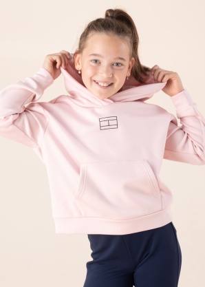 Стильный и модный свитер Tommy Hilfiger изготовлен из двусторонней ткани с водоотталкивающим материалом. Поверхность приятная на ощупь, а внутренняя шелковистость дает ощущение роскошной мягкости. Уютный капюшон на хлопковой подкладке, скромная рамка-флаг на груди и большой карман на животе. Концы рукавов и нижний край окаймлены с резинками из мягкой ткани, а на внешней стороне левого рукава имеется небольшой логотип Tommy. Рост модели 147 см, надет размер 140. Материал: полиэстер 54%, вискоза 40%, эластан 6%. Цвет: розовый