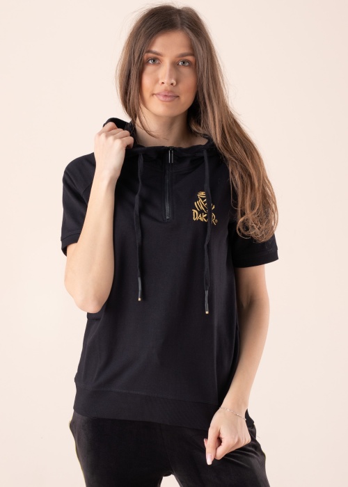 Хорошая кофта Diverse Dakar подходит для проведения досуга. Своеобразная кофта- капюшон и короткие рукава. На капюшоне имеет тоннельный шнурок , на горловине находится замок , также на груди- логотип бренда. Рост модели - 178 см и носит размер S.