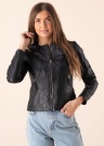 Эффектная и модная куртка из высококачественной кожи "Paula" от "Saki" идеально подходит для повседневного ношения ранней весной, а также для прохладных летних вечеров. Куртка имеет круглый вырез и застёгивается на молнию. По бокам располагаются карманы на молнии. Модель дополнительно украшают дизайнерские швы на плечах. Внутренняя поверхность покрыта шелковистой на ощупь подкладкой, приятно удобной для кожи. Рост модели 178 см, изделие в размере 36. Длина от спинки до низа в данном размере 50 см.