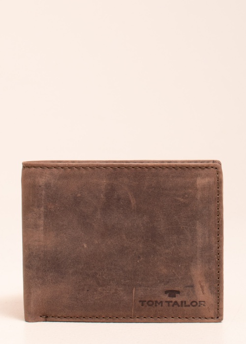 Оригинальный, практичный складной кошелёк с искусно состаренной поверхностью от Tom Tailor. На передней части изделия расположен тиснённый логотип бренда. Кошелёк без застёжки состоит из двух секций для купюр, 9 карманов для карт, один из которых полупрозрачный, 4 дополнительных кармашков и кармана для монет с застёжкой на одну кнопку. По центру расположен карман на молнии, который открывается в двух направлениях. Размеры изделия: высота 10 см, ширина 12 см. Цвет: коричневый