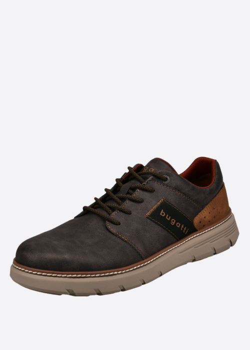 Мужские повседневные туфли Bugatti Palau — это отличный выбор для ежедневного ношения. Эти туфли легкие и удобные, что делает их идеальными для длительных прогулок. Верхняя часть обуви оснащена шнуровкой, обеспечивающей надежную фиксацию на ноге. На внешней стороне обуви находится логотип бренда, подчеркивающий стиль и качество. Декоративный элемент на пятке добавляет изысканности и завершает общий дизайн.