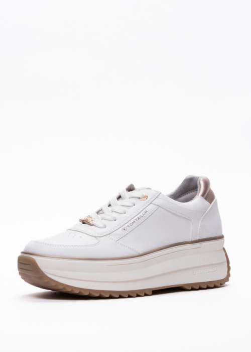 Женская повседневная обувь от Tom Tailor идеально подходит для стильных и современных женщин. Эти туфли оснащены платформенной подошвой и шнуровкой, что обеспечивает комфорт и надежную фиксацию. Перфорация в области носка добавляет оригинальности и улучшает вентиляцию. На внешней стороне обуви размещен логотип бренда Tom Tailor, подчеркивающий их уникальность. Декоративный элемент на пятке придает дополнительный шарм и завершает образ.