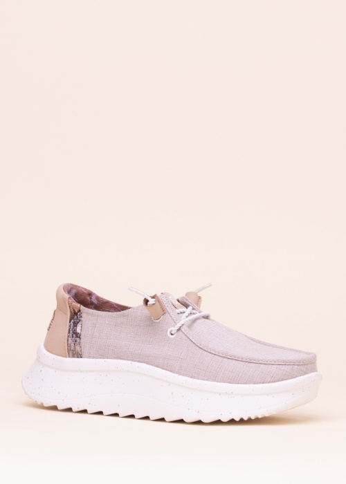 Привлекательный кроссовки Hey Dude подходят для стильной женщины. Товар - платформа и лёгкие и изготовлен из текстиля , акцента добавляет интересный дизайн. Внутреннюю часть покрывает текстиль и стелька вынимается, при желании. Подошва характеризуется легкостью, платформа выражает модность. Отличный выбор, если Вы цените смелый стиль