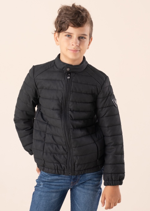Мальчиковая куртка от Guess идеальный выбор для начала осени и так же на весну. Воротник застегивается на липучку спереди, куртка на молнии. По бокам есть потайные карманы, на левом рукаве фирменный логотип. Манжеты на резинке, которые предают форму объемным рукавам. Подкладка из гладкой ткани из полиамида. Наполнение из полиэстера защитит в холодную погоду. Рост модели - 146 см, надет размер 152. Длина изделия от ворота до нижнего края 53 см. Материал: 100% вискоза с полиуретановым покрытием. Цвет: черный.