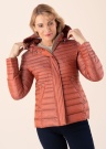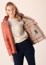 Дочерняя компания Betty Barclay, Gil Bret, создала простую и теплую стеганую куртку с двумя открытыми карманами спереди и ленточными мотивами снаружи для акцента. Спереди застегивается на молнию, защищенную накидкой с кнопками, а съемный капюшон обеспечивает защиту от ветра и дождя. Рукава и нижний подол свободно свисают, а внутренняя часть покрыта подкладкой из гладкого полиэстера. Рост модели - 178 см, носит размер 36. Общая длина куртки составляет 62,5 см.