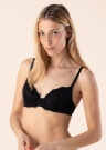 Прекрасный женский бюстгальтер Lauma, покрытый игривым кружевом, отлично подходит для повседневной носки. Мягкая подкладка и поддерживающие ручки обеспечивают хороший захват и приятный комфорт при ношении. Плечевые лямки регулируются, а спинка изделия может быть застегнута с помощью фиксирующего ремня. Рост модели 177 см, носит размер 75B. Материал: нейлон/полиамид 46%, хлопок 45%, эластан 9%. Цвет: черный.