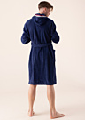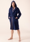 С цветной окантовкой по краям мужской утренний халат с капюшоном Bugatti Decimo - спортивного молодёжного стиля. Изготовленный из качественного хлопка с приятно мягкой махровой поверхностью халат незаменимый спутник в утренние и вечерние часы и при посещении спа. Завязывается поясом на талии, по бокам - открытые вместительные карманы. Рост модели 193 см, носит размер L. Общая длина изделия данного размера 113 см. Материал: хлопок 100%. Цвет: тёмно-синий.