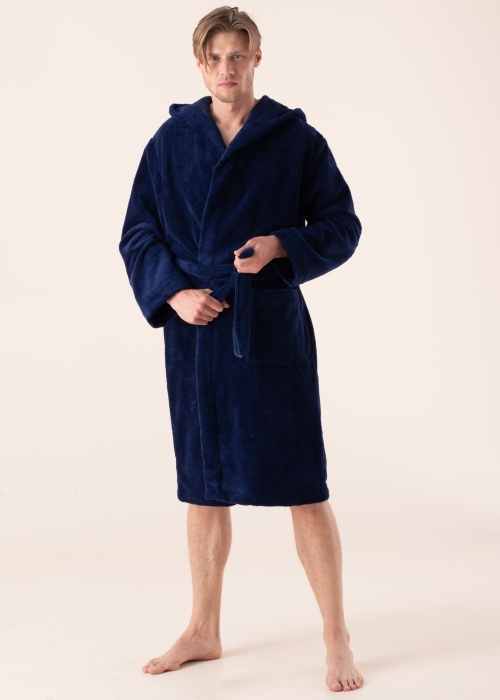 Махровый халат Roberto от Bugatti балует своим уютом. Халат с капюшоном мягкий и теплый, с поясом, завязывающимся посередине, и открытыми карманами спереди. Практичный и удобный предмет одежды незаменим сонным утром, после душа или расслабляющим вечером. Рост модели 193 см, изделие в размере L. Длина по спинке 118 см.